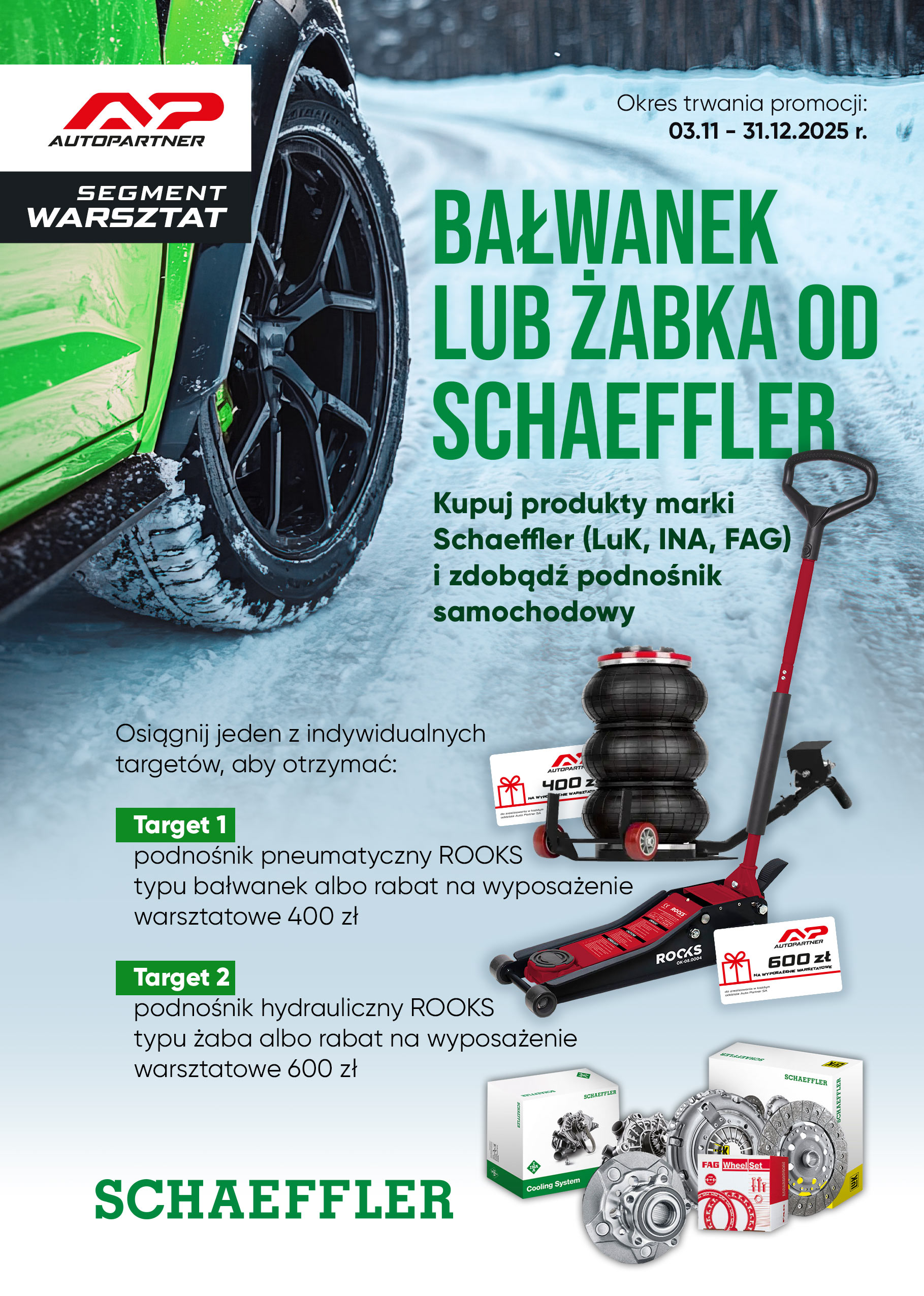 Kupuj produkty marki Schaeffler (LuK, INA, FAG) i zdobądź podnośnik samochodowy.