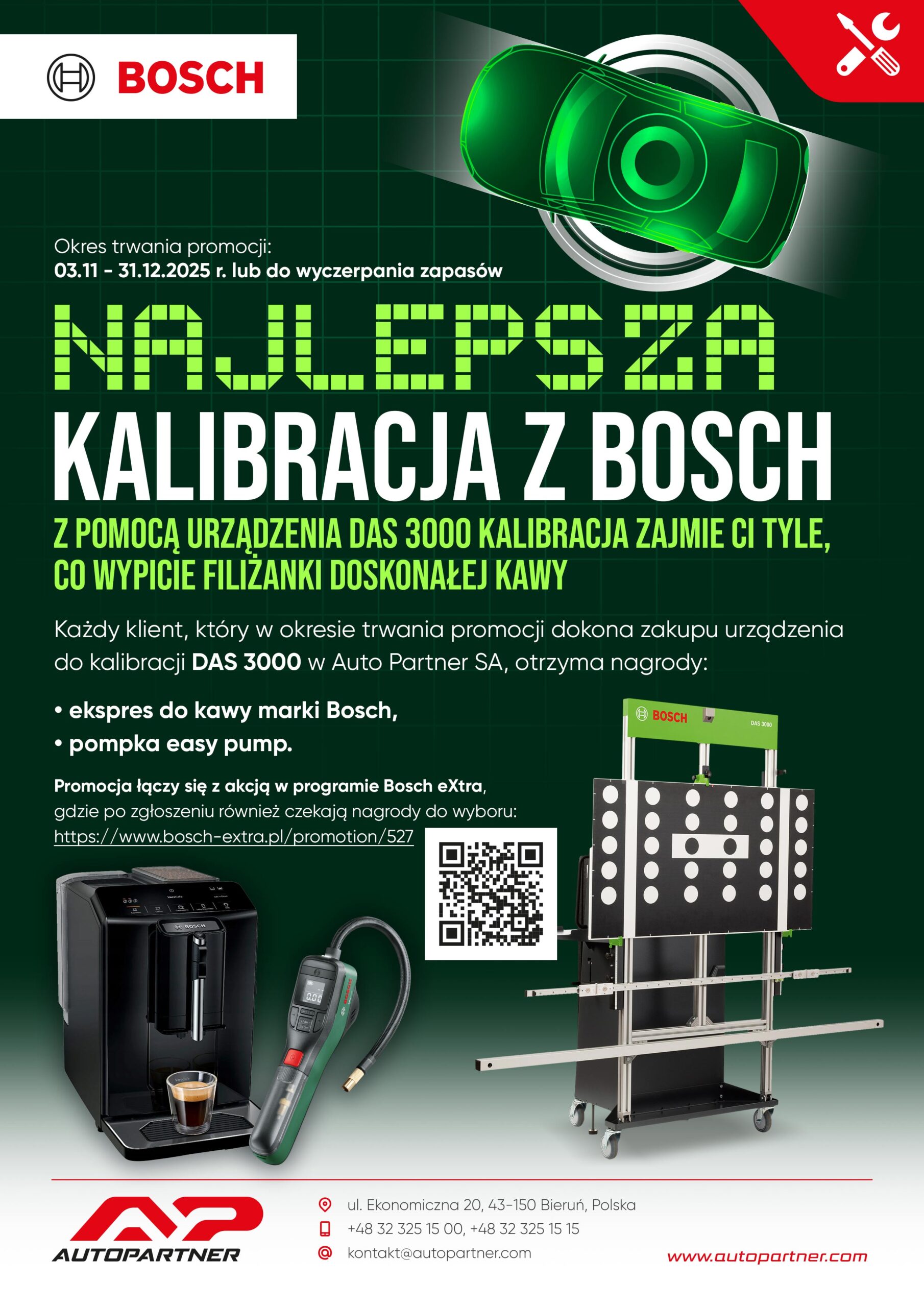 Każdy klient, który w okresie trwania promocji dokona zakupu urządzenia do kalibracji DAS 3000 marki Bosch w Auto Partner SA, otrzyma nagrody: