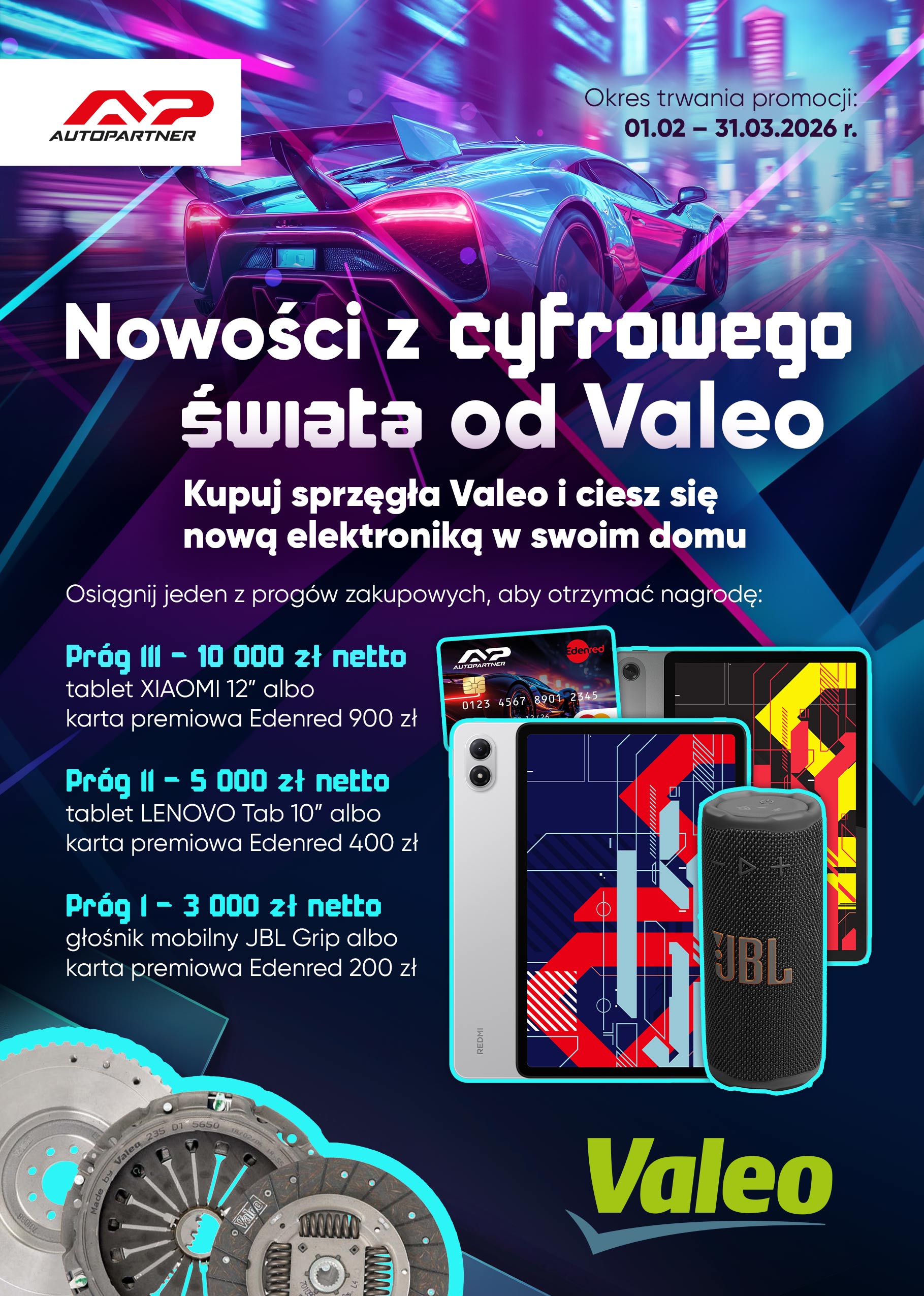 Każdy uczestnik promocji, który w okresie jej trwania osiągnie określony próg zakupowy na sprzęgłach Valeo, otrzyma nagrodę: