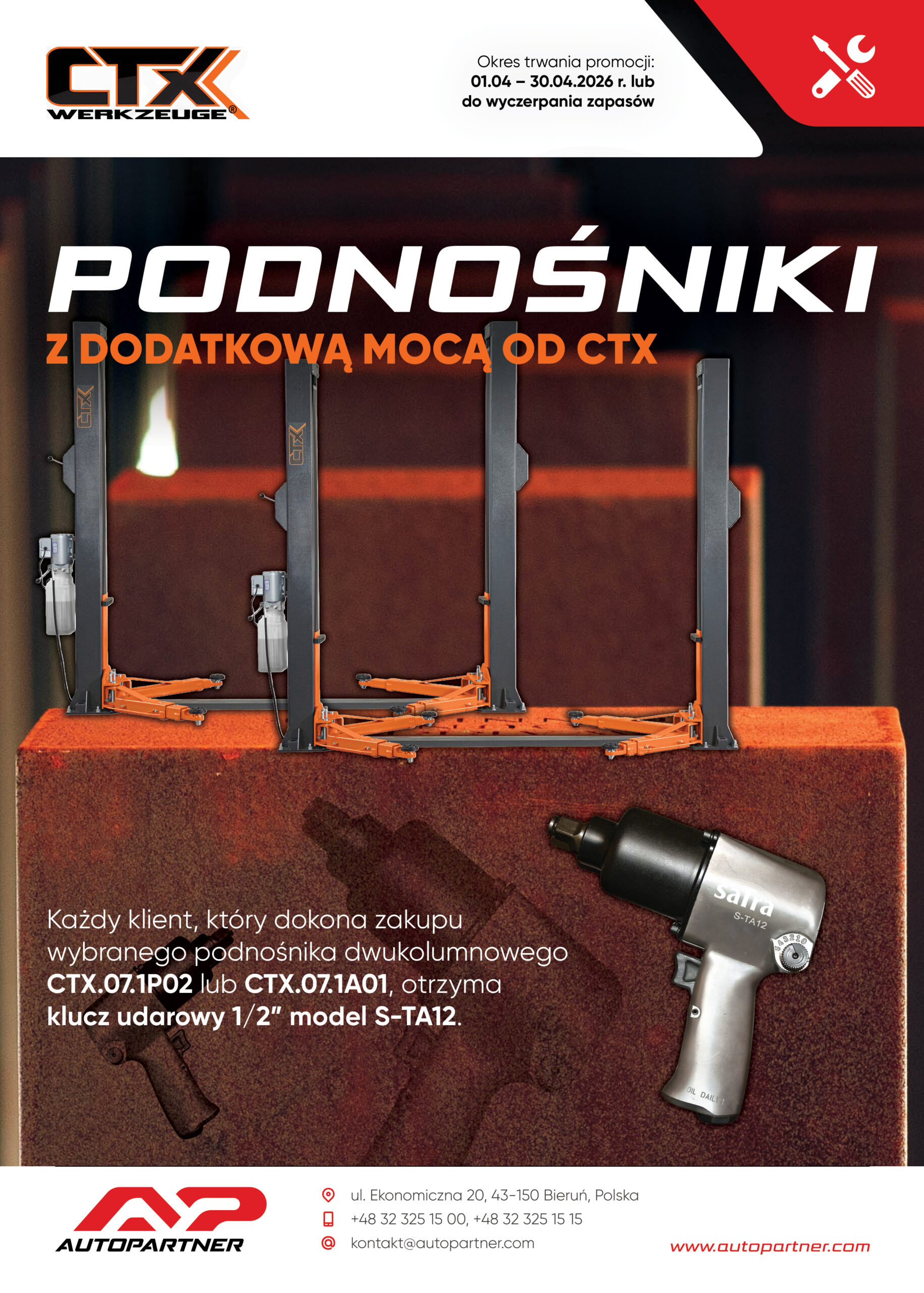 Każdy klient, który dokona zakupu wybranego podnośnika dwukolumnowego CTX.07.1P02 lub CTX.07.1A01, otrzyma klucz udarowy 1/2” model S-TA12.