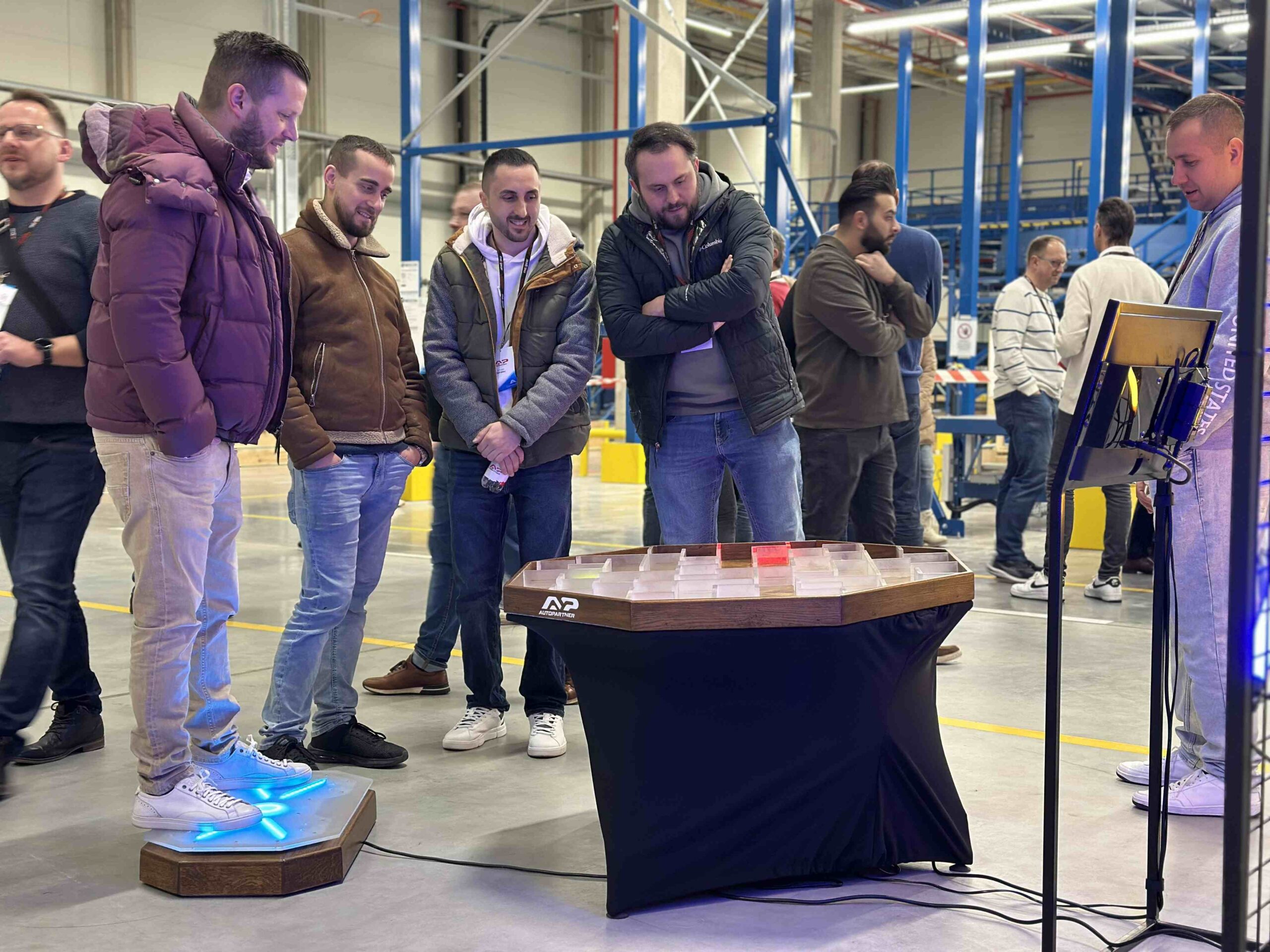 Uczestnicy jako pierwsi mieli możliwość zobaczyć naszą nowoczesną halę magazynową, poznać jej strukturę oraz rozwiązania technologiczne, które znacząco usprawniają procesy logistyczne. Zwiedzanie przestrzeni magazynowej zostało wzbogacone o dodatkowe atrakcje – w tym targi dostawców, na których partnerzy mogli zapoznać się z ofertą kluczowych marek współpracujących z Auto Partner.