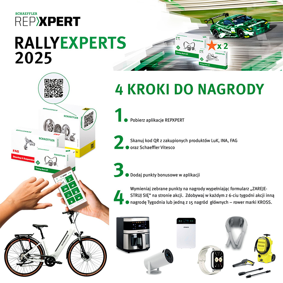 Kupując produkty LuK, INA, FAG i Schaeffler Vitesco oraz rejestrując punkty w aplikacji REPXPERT, uczestnicy mają szansę wygrać atrakcyjne nagrody tygodniowe lub jedną z 15 nagród głównych. Akcja trwa od 15 września do 26 października 2025 roku.