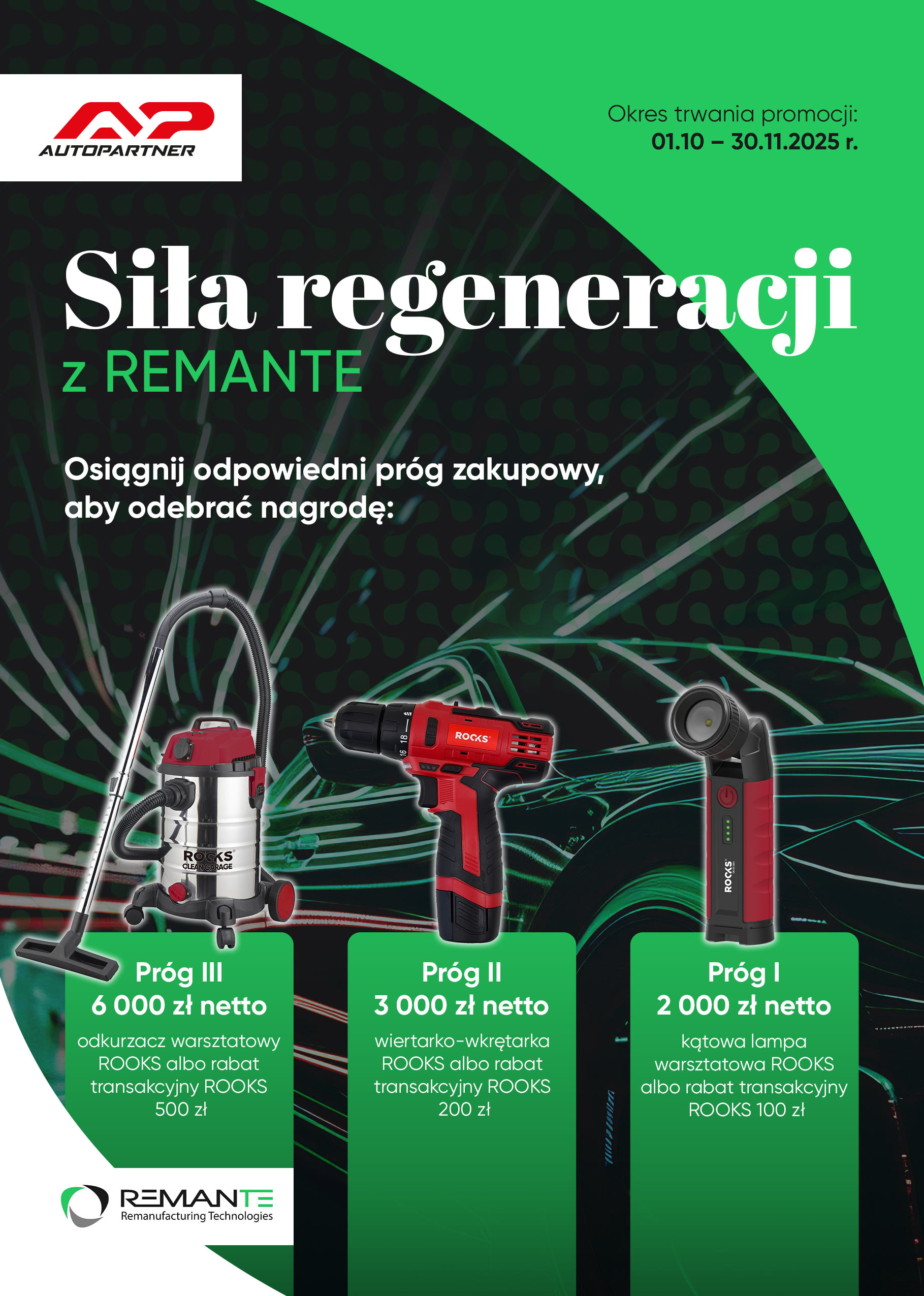 Każdy uczestnik promocji, który w okresie jej trwania osiągnie jeden z poniższych progów zakupowych na asortymencie marki REMANTE, otrzyma nagrodę: