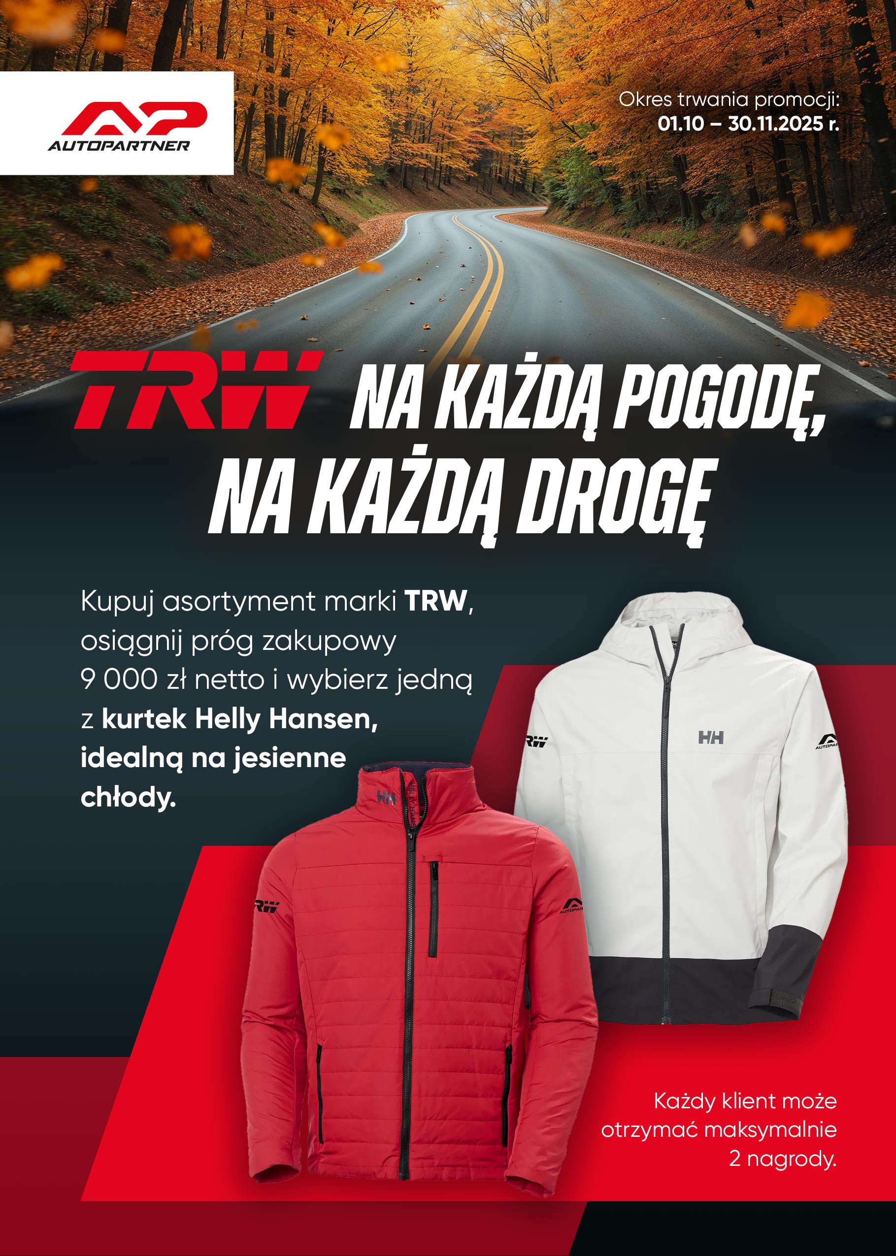 Każdy uczestnik promocji, który w trakcie jej trwania osiągnie próg zakupowy 9 000 zł netto na asortymencie TRW, otrzyma kurtkę Helly Hansen.